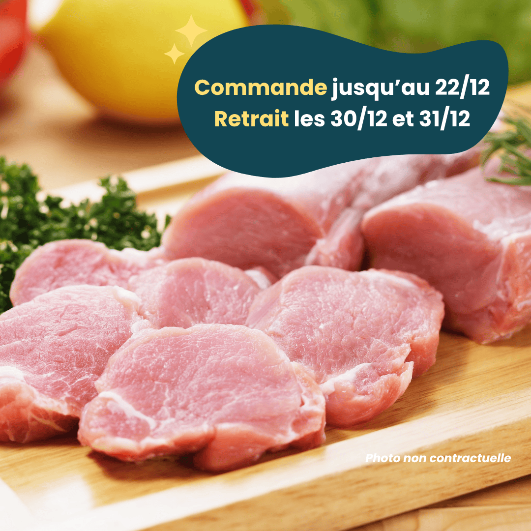 Pour réserver votre Filet mignon de porc, un acompte de 20€ vous sera demandé. Ce produit étant facturé au poids, nous ajusterons le prix final de l'article en conséquence au moment du retrait. (Uniquement par CB)