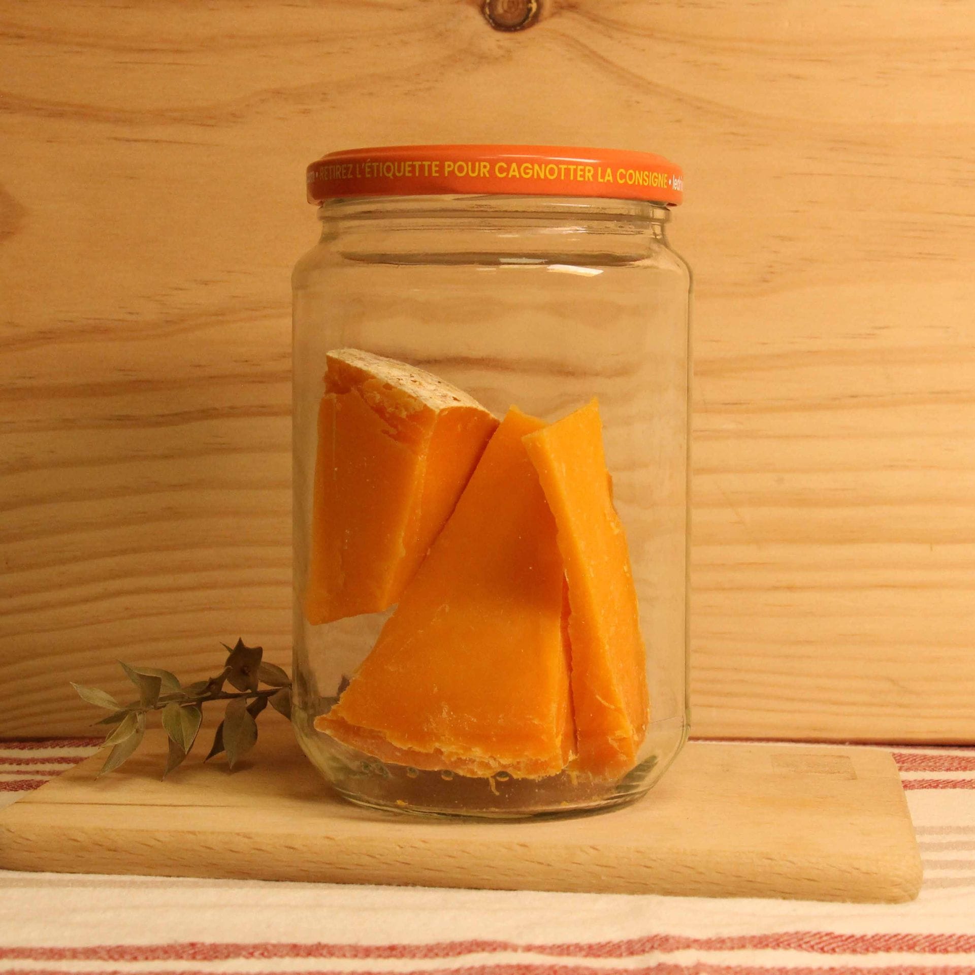 Lait (origine : France) de vache pasteurisé, Sel, Ferments Lactiques, Présure, colorant : Norbixine de Rocou