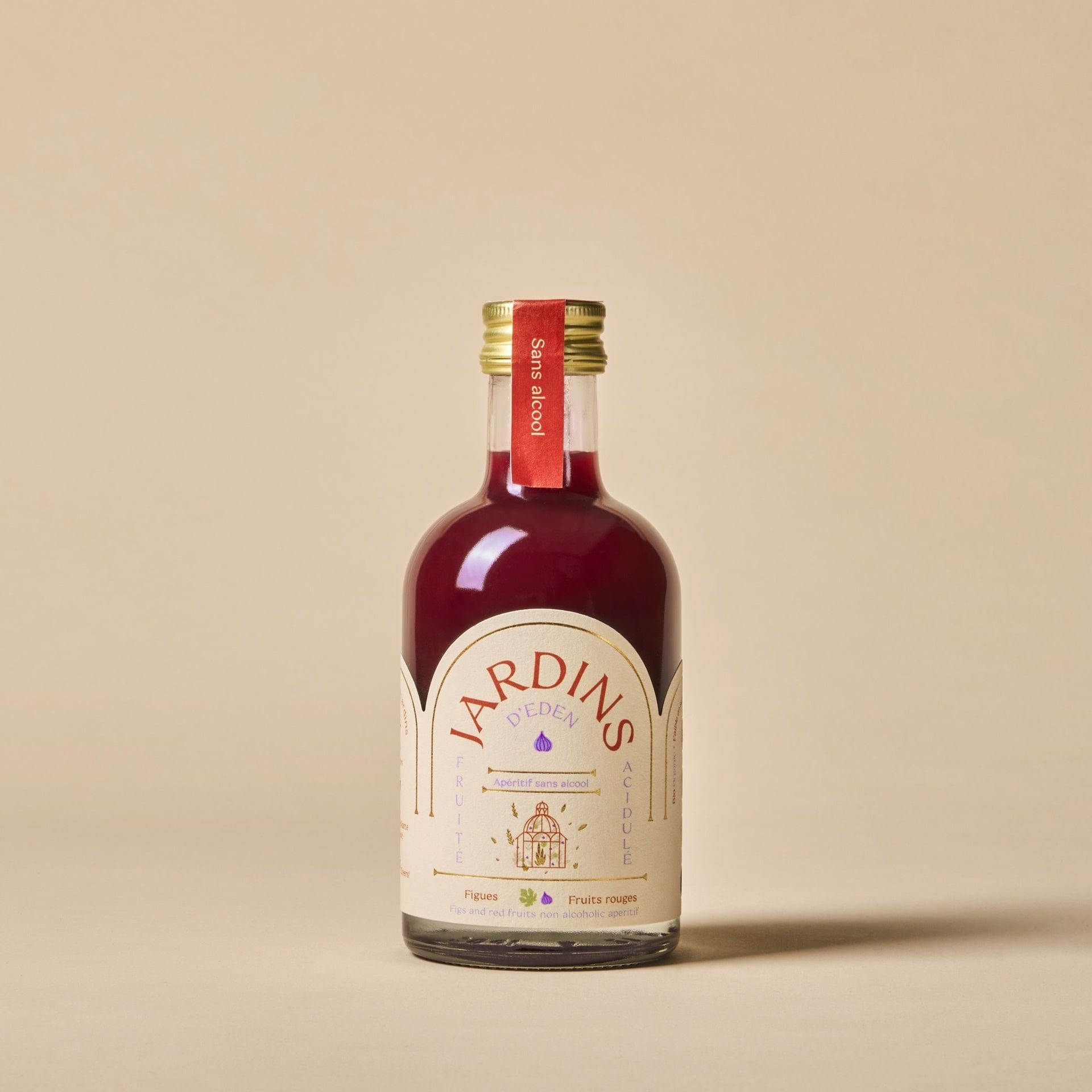Eau, jus de pomme*, purée de mûre*, infusion de feuilles de figuier*, moût de raisin*, infusion d’hibiscus*, macérat de feuilles de figuier*, infusion de tonka*, arômes naturels, farine de graine de caroube*.