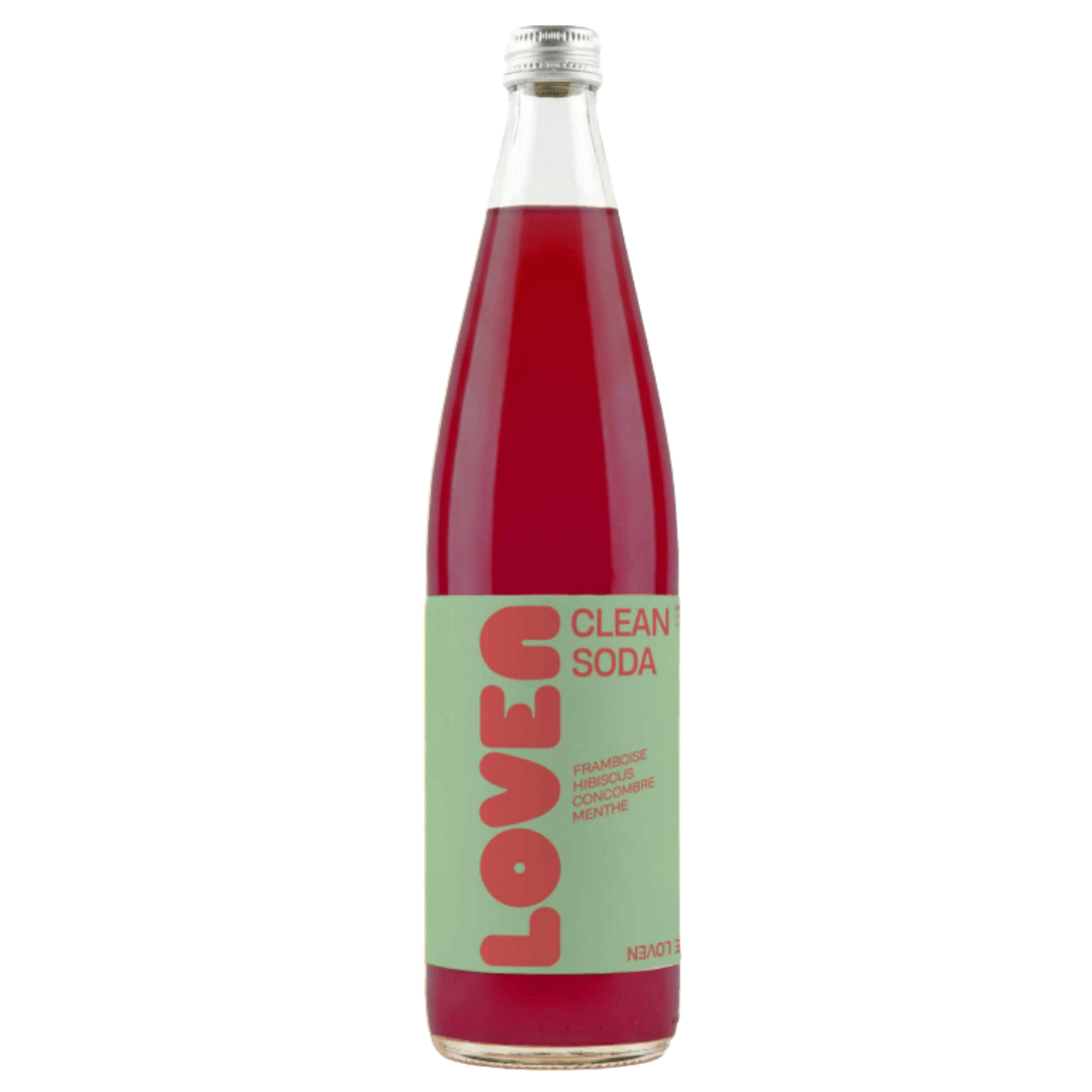 Eau filtrée, thé fermenté* (eau filtrée, culture de kombucha*, sucre de canne blond consommé durant la fermentation*, thé*), jus de pomme*, purée de framboise* 4,5%, purée de groseille*, jus de concombre* 0,5%, menthe* 0,25%, hibiscus* 0,15%, gaz carbonique.