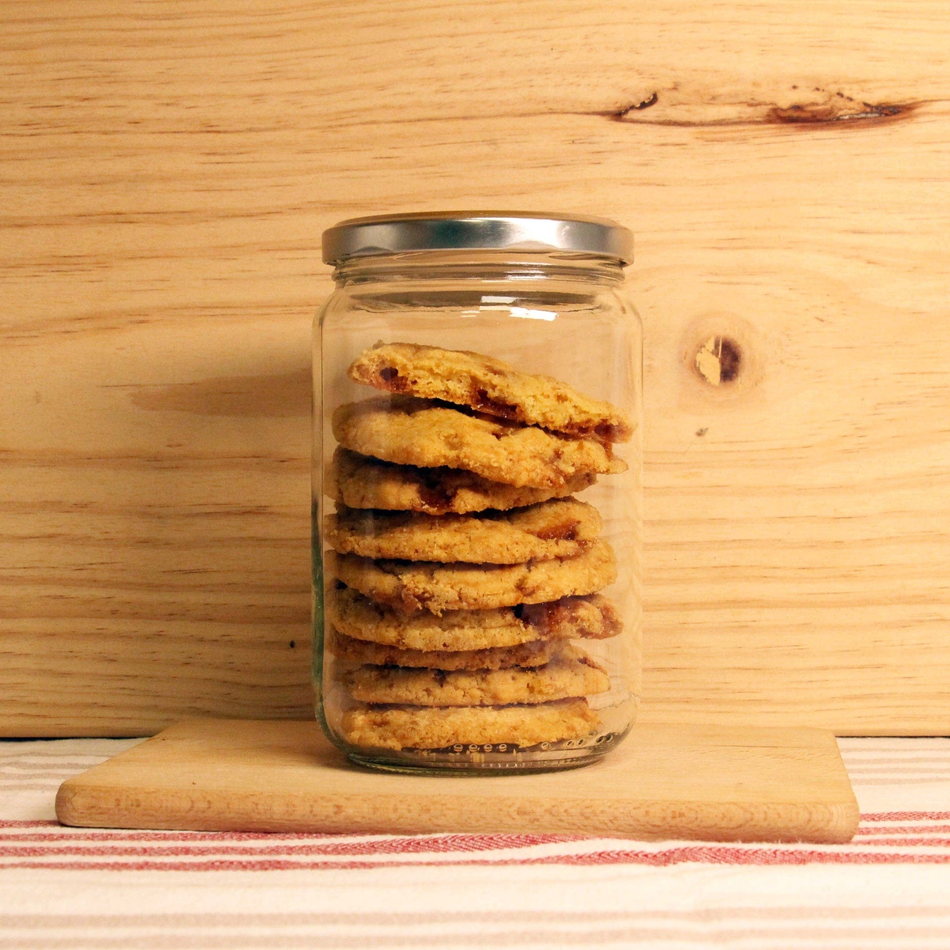 Farine de blé*, sucre de canne blond *, beurre*, éclat de caramel* (sirop de glucose*, sucre*, crème*, beurre*, sel, eau) 8%, œufs*, bicarbonate de soude , sel de guérande.