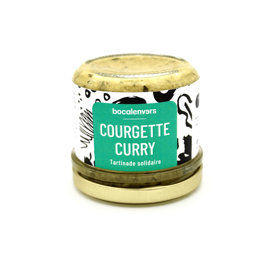 Courgettes (71%), oignons, graines de tournesol, vinaigre blanc, vinaigre de cidre, huile de colza/tournesol, sucre blanc, curry (<1%), sel, ail semoule, basilic
