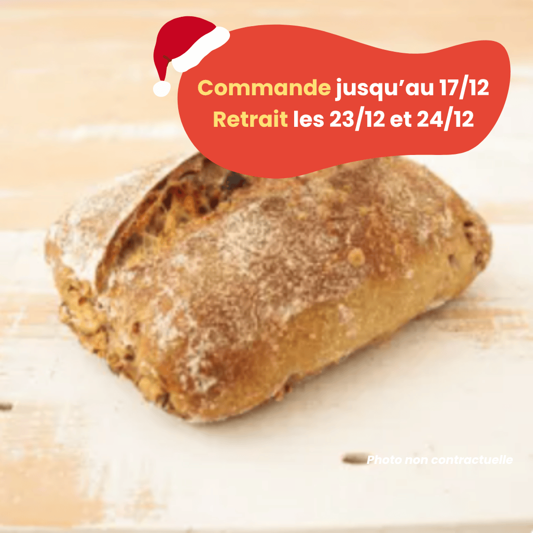 INGRÉDIENTS : Farine (gluten) T65, levure fraîche, noix, sel fin, eau.